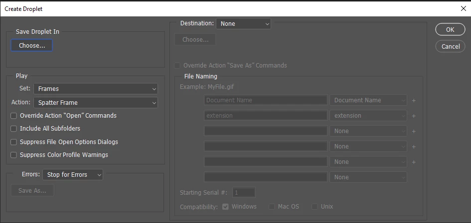 But when I try the action on another image it stalls at that final menu "do you want to save changes" and is waiting for me to manually click 'yes', totally defeating the purpose.