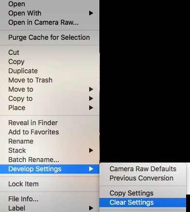 If I make changes inside camera raw, how do I do a full reset to erase and changes I made?