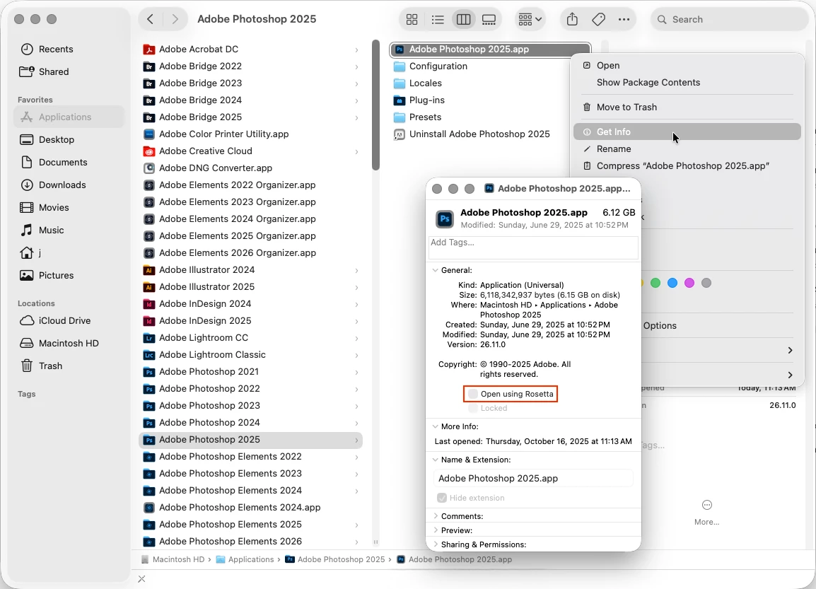 I started running into the issue with photoshop not allowing the remove tool to be used because my "system is running in rosetta". I do not have the box to uncheck "open in rosetta" under the get info section and I cannot find other ways to turn this off. This was not an issue beforehand and i just did a photoshoot and need to get these photos done asap. I need any advice or help on this issue.