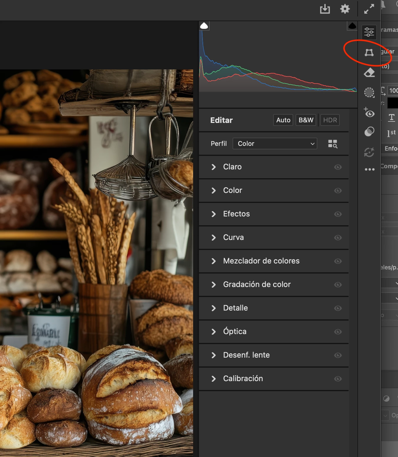 Herramienta cortar / rotar en Camera Raw 17.4.2