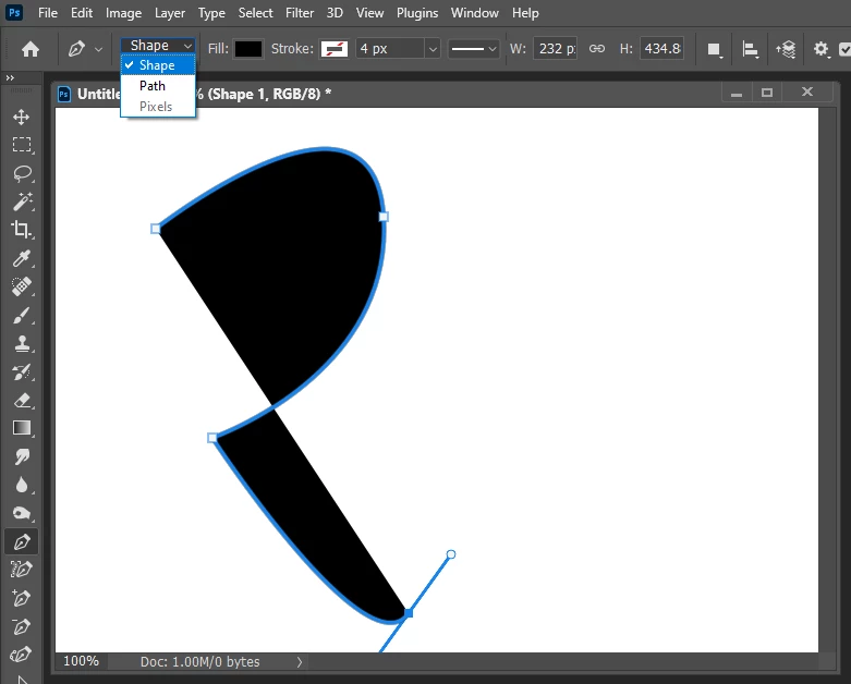 The pen tool can also be used in Shape mode