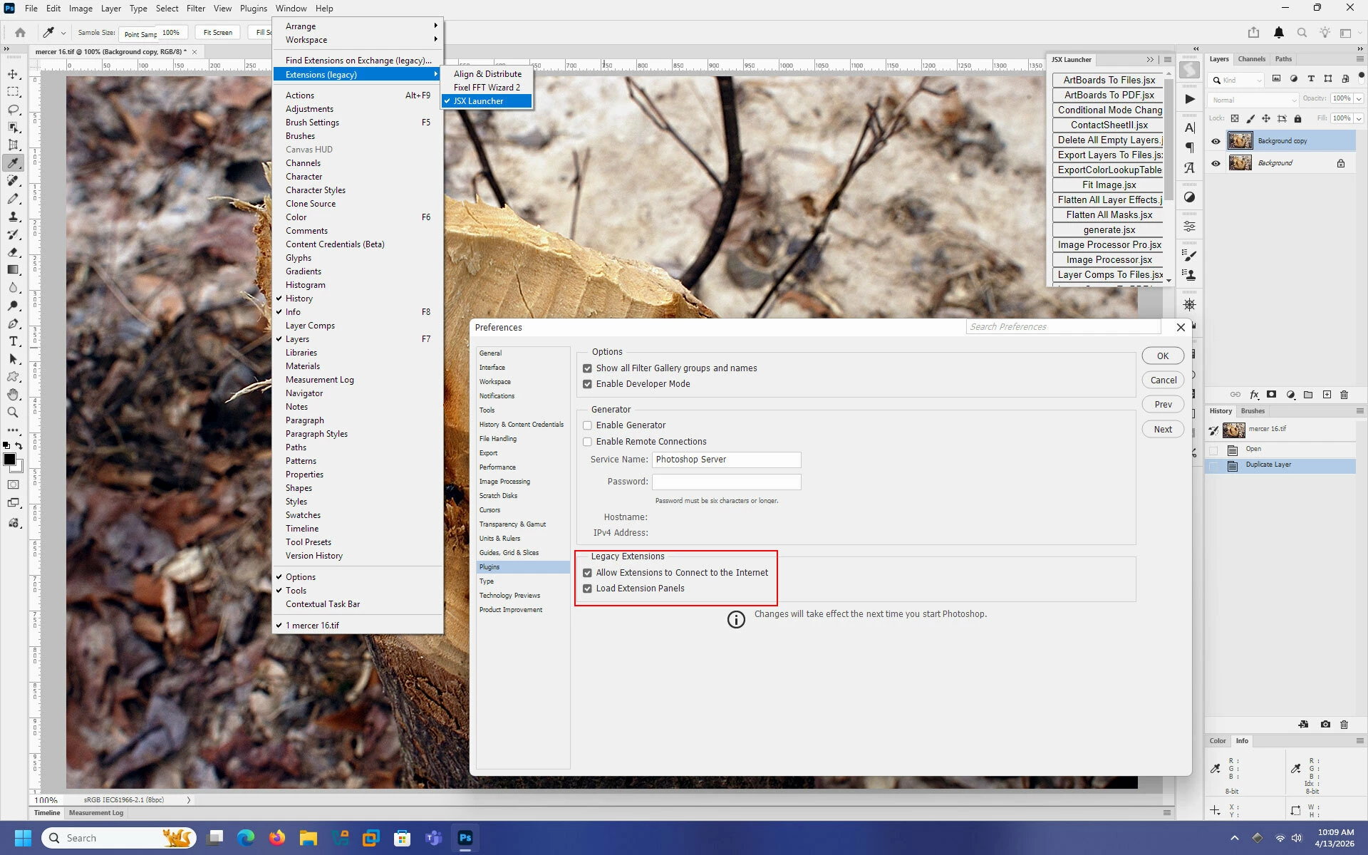I currently have Photoshop 2025 installed, but the “Extensions (Legacy)” panel is disabled and the plugin cannot load.