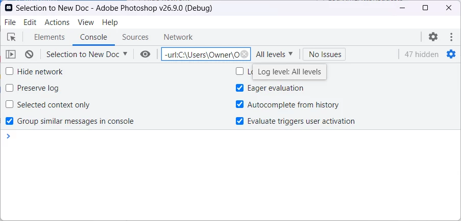 Hi I'm trying to write a plugin with UXP developer tools for Photoshop, but I'm getting stuck with the debugging. I've got a lot of debugging info written to console.log() and in UXP developer tools. If I click debug and bring up the console, I can see there are a number of console messages, but I can't read them because they are hidden. I can't figure out how to get them to display.