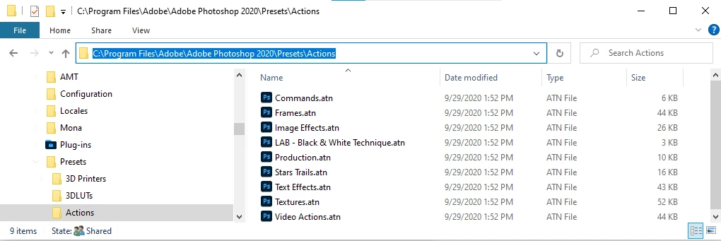 Thank You. But before doing what you suggested, I tried to 'Load actions' to make sure that the default actions are saved somewhere in case I need them in the future. But the Actions folder is empty !