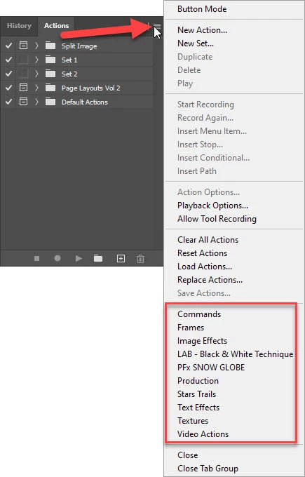 I am using custom Actions in Photoshop and so want to hide the default actions because they are of no use for my workflow and are cluttering the Actions panel in the button Mode.