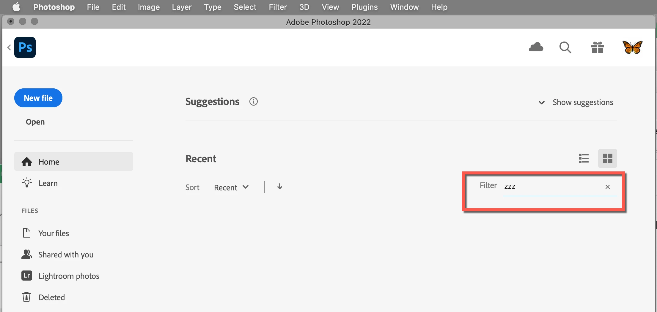Hide recent files on home page, but not in files menu inside Photoshop