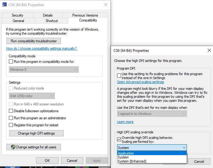The most ideal solution so far for computers that are using Windows Scaling that is not 100% was to use the manifest file suggested by Dan Antonielli. I personally use scaling at 125% because on my monitor, everything else at 100% looks extremely small. Changing high-dpi settings on Properties DOES NOT work with cases like this.