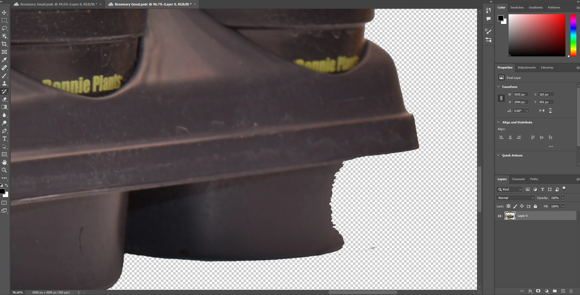 I am removing backgrounds on photos. I use the magic erase tool for 95% of the work and then touch up whatever is needed. As you can see in the screenshot, a section of the black tray is missing. Whenever I go to use the history brush tool it will not restore the image. There is no error message. It simply does not restore.