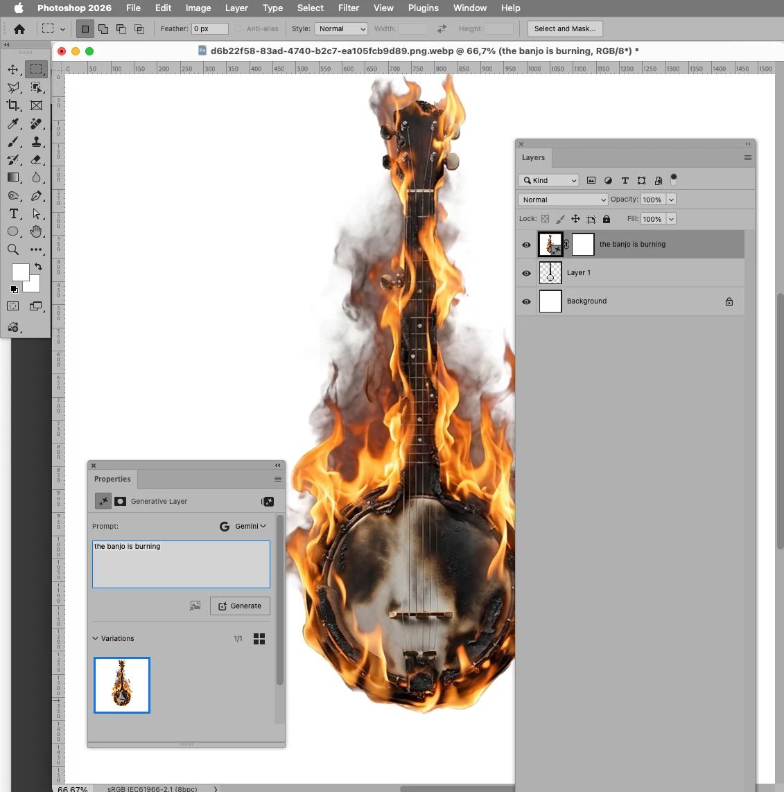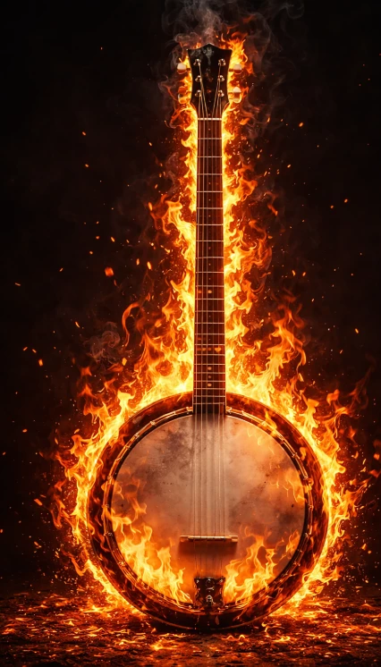 This is ai generated banjo and i want to add fire all of the banjo. Any can help with it? Thanks in advance
