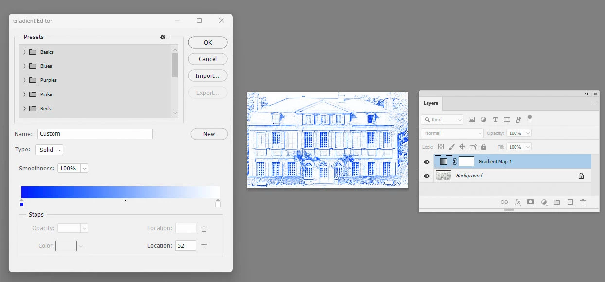 Try a gradient map adjustment layer with the gradient running from blue to white.