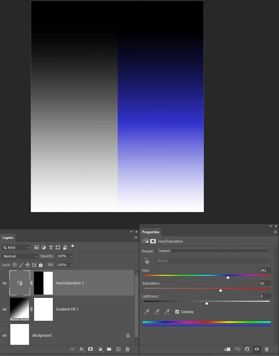 When you add color to a greyscale image in Photoshop it only affects the midtones.  I have used the exact same Hue/Sat setting to the black to white gradient below, and you can see that the black and white areas are showing no colour.