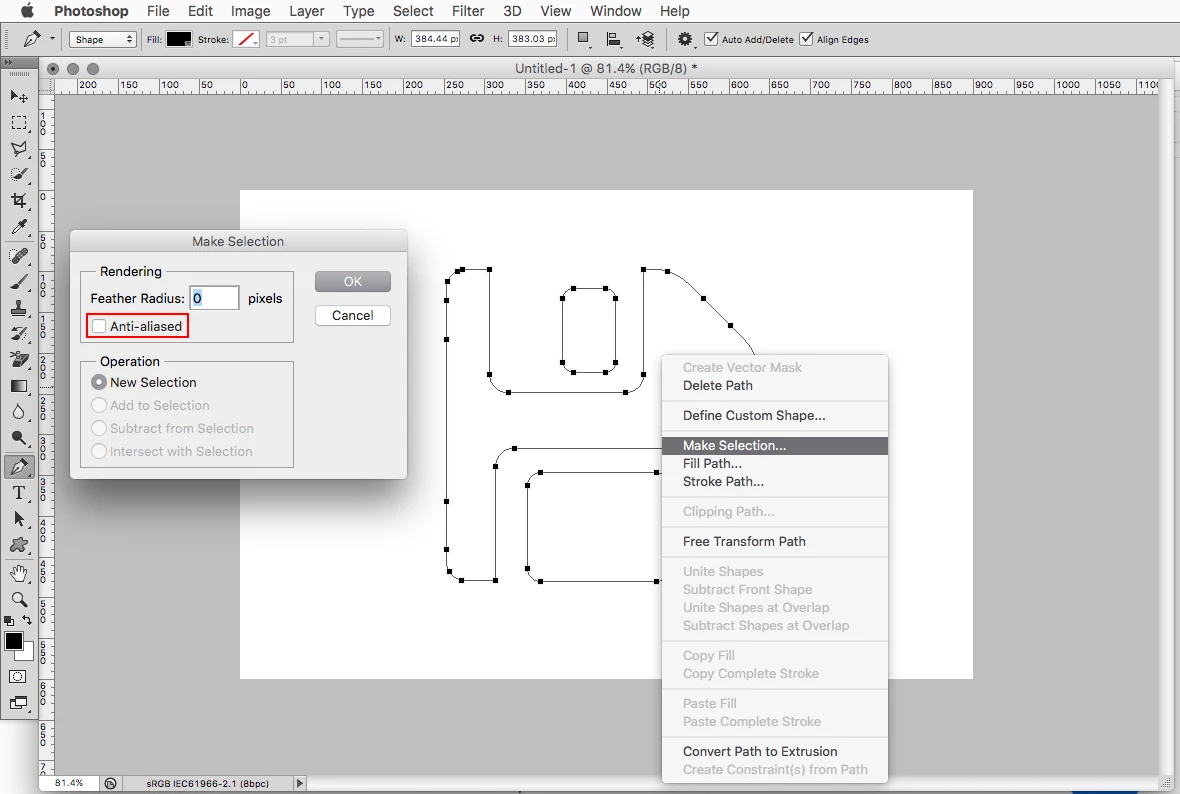 How can I convert path to aliased NOT anti-aliased selection ?