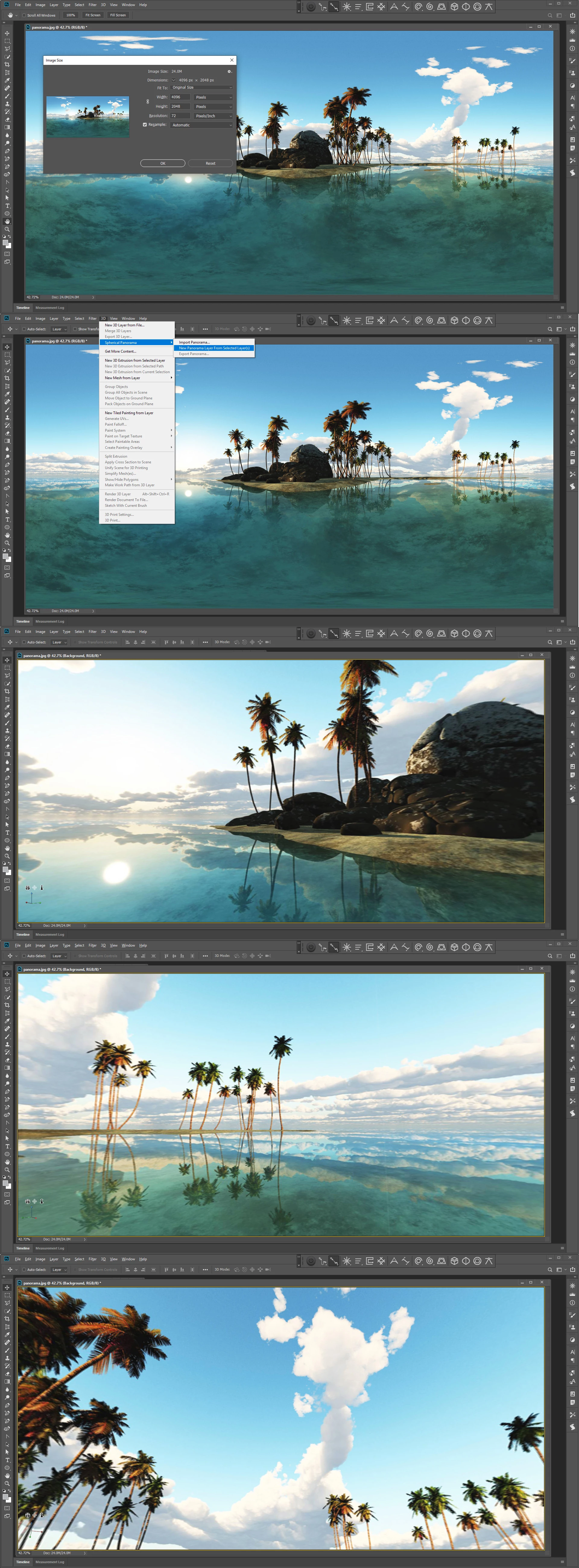 How can i make this image to look like the one below. The bewlo image looks like it has some concave effect to achieve the 360 effect.