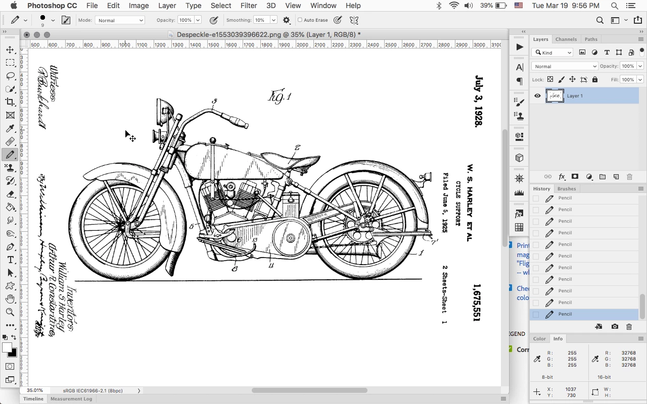 The patent below has a lot of speckles. I would like to get rid of them but maintain the detail elsewhere.