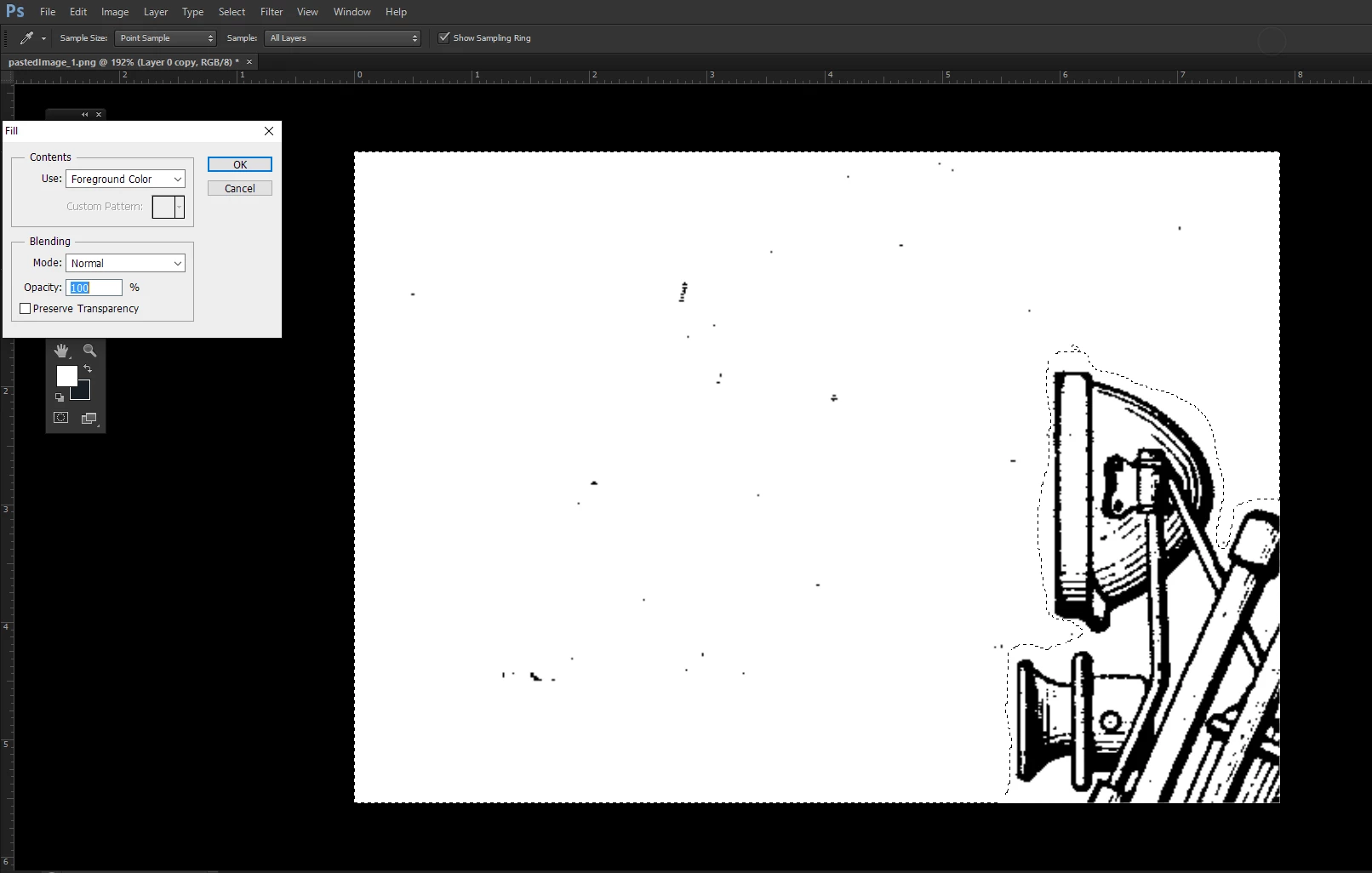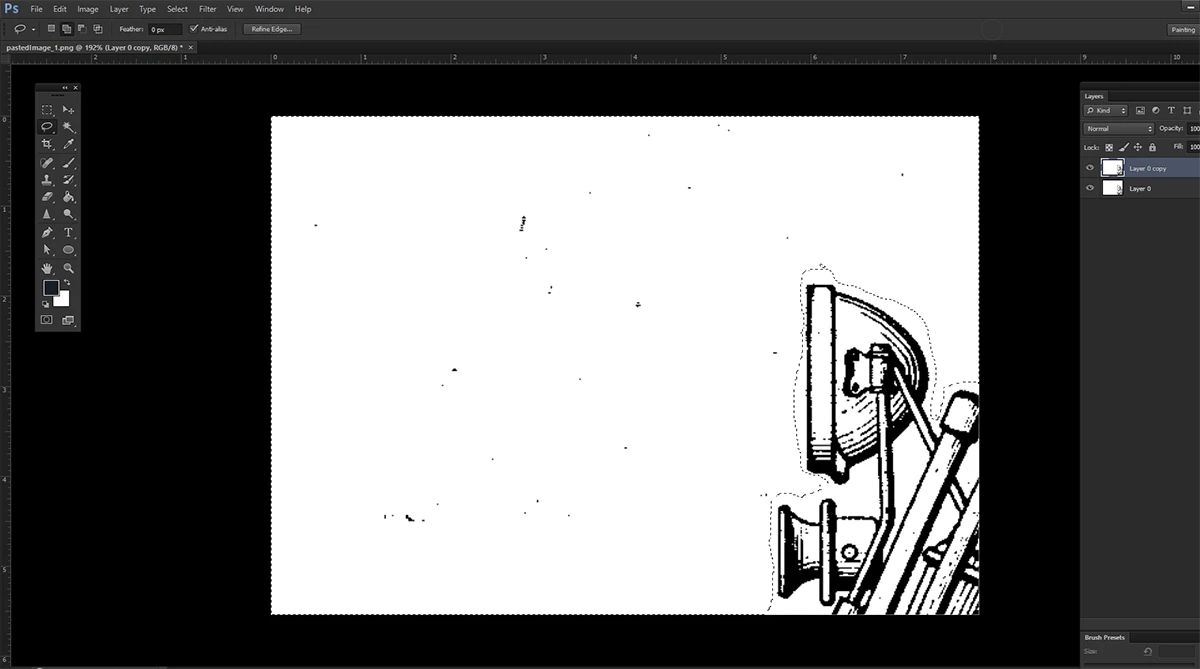 How can I get rid of black speckles from patent artwork like this?