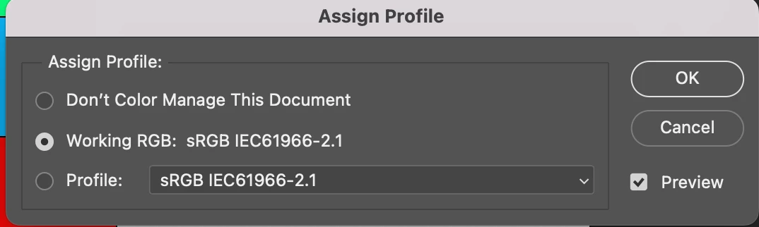 Should I just go to "Edit>Asign Profile", and check the one written next to "Profile"?