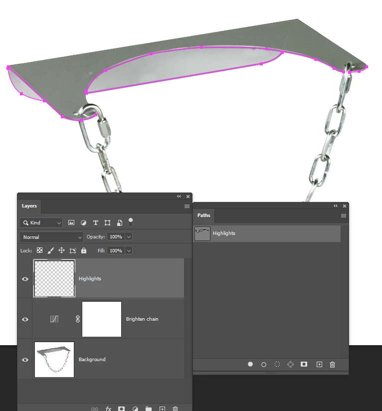 Make a new workpath that outlines the top plate. Be sure to drag the first path to the New path icon to save it first.