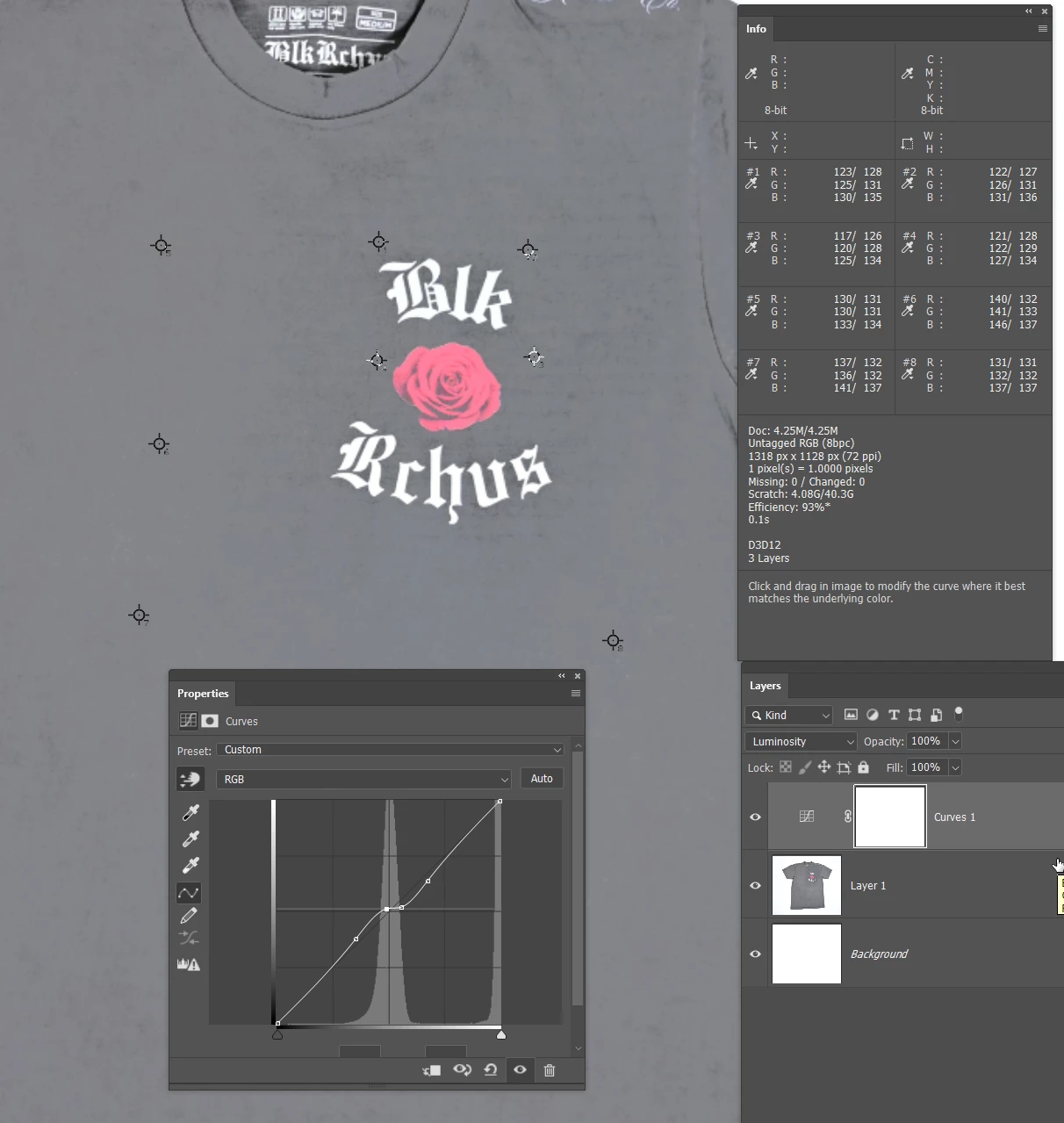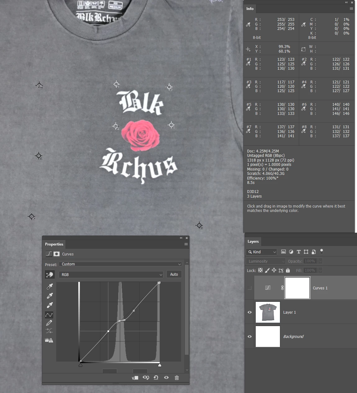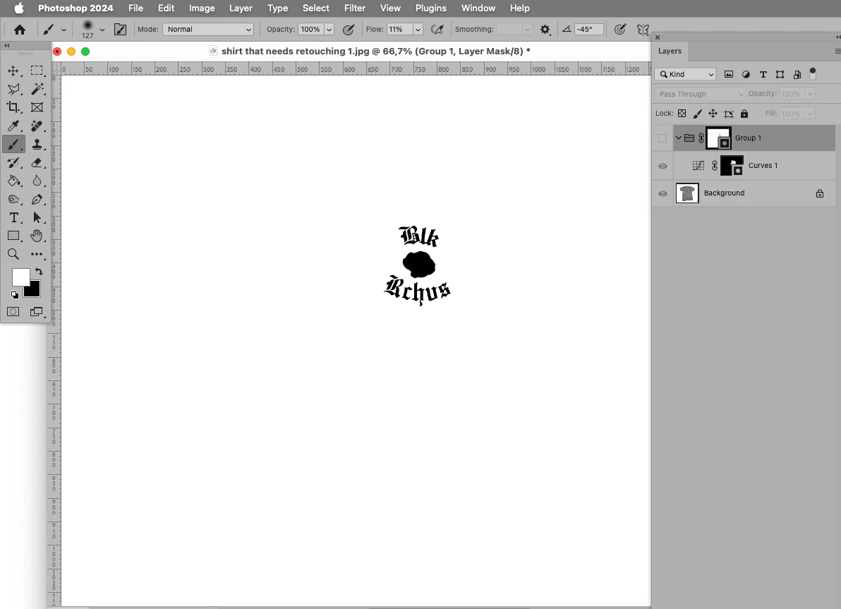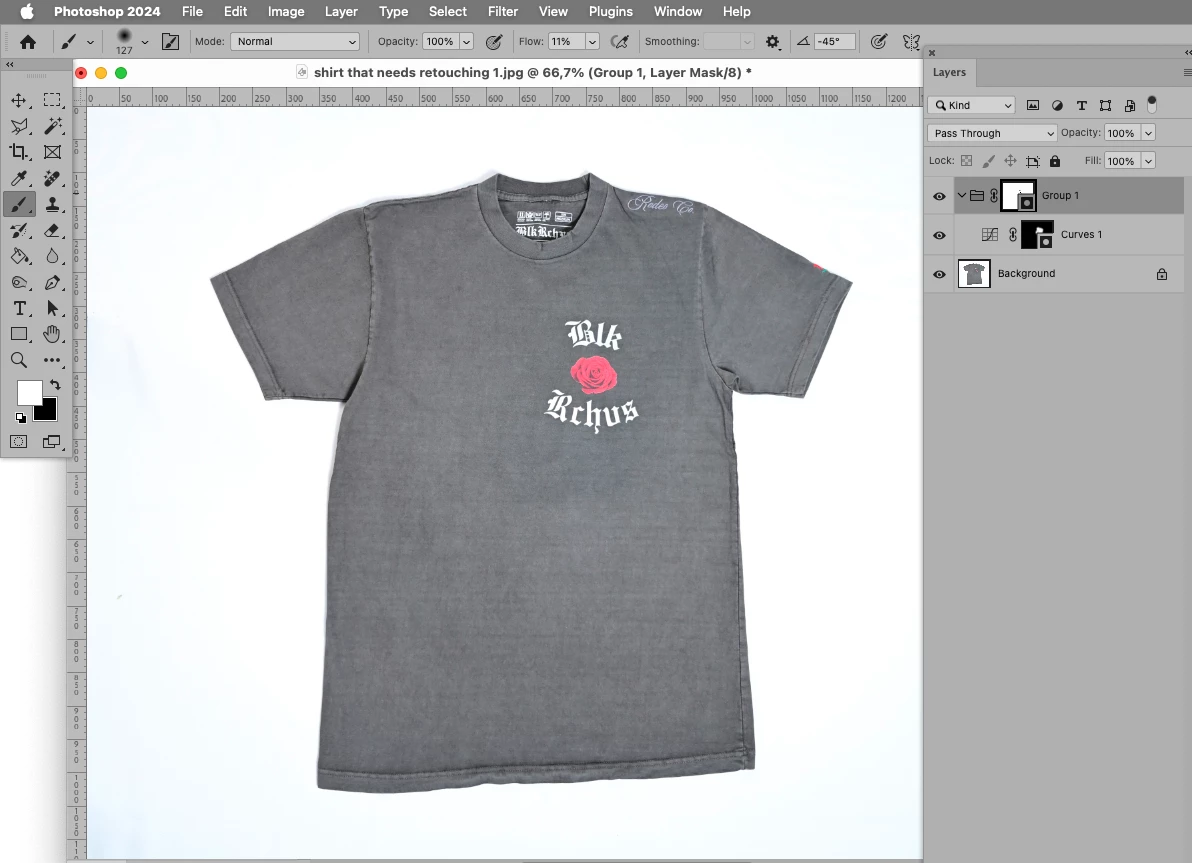 If you look at this t-shirt, can you sort of notice how the gray region surrounding the logo seems more darker, compared to the rest of the shirt? Is there a way to somehow retouch that region, so that the overall color tone of the shirt appears more evenly balanced?