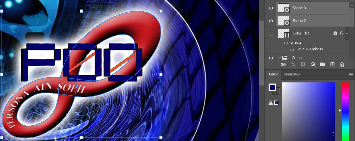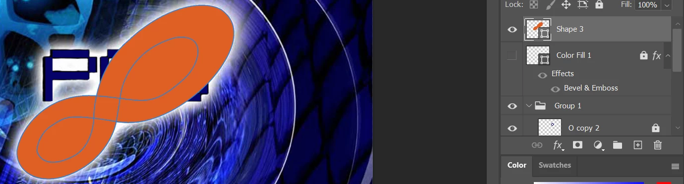 Did you import the Infinity shape from Illustrator or Draw it directly in Photoshop? If you drew it in Illustrator, did you apply a compound path? If you copy and paste it from Illustrator, did you try pasting as a path or as pixels to see if you still get the same fill issue?