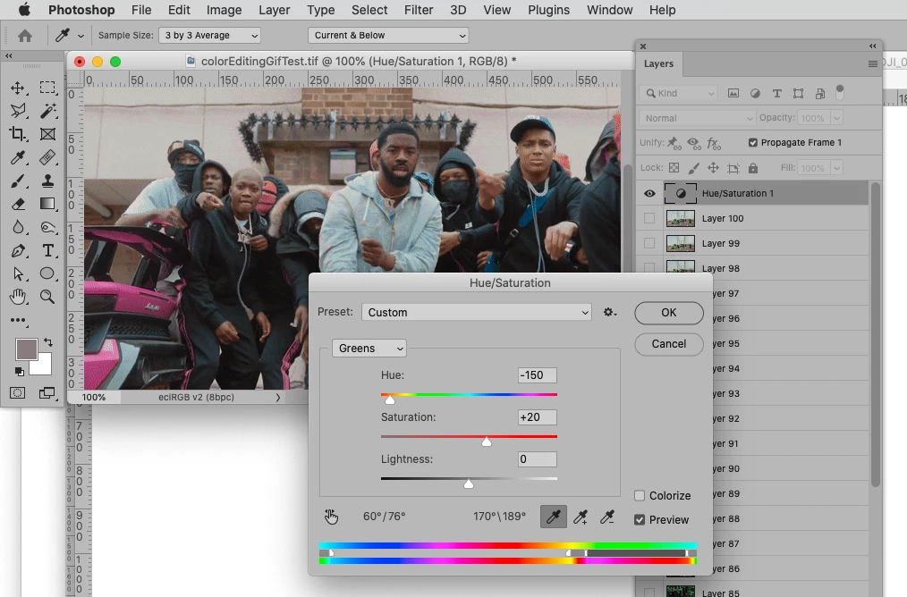 I'm trying to replace the green in this gif with a red, however I can't use the action macros because it'll say the replace color tool is unavailable for any other layer. Any ideas? Simply wanna replace the green with a red color.