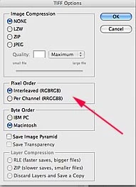 How can I tell if a tiff was saved with "interleaved" or "per channel" for pixel order?