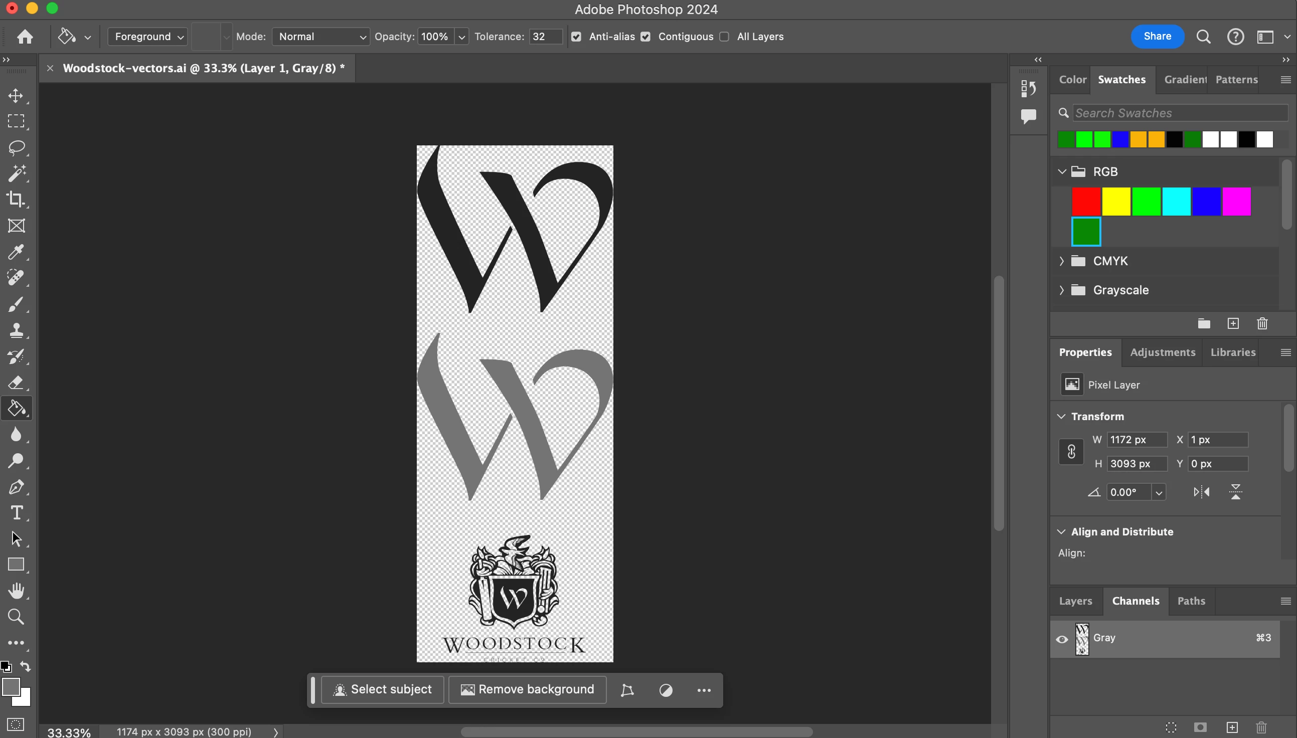 Your image is a grayscale image. You can see which color mode is being used in the document's tab where it shows "Layer 1, Gray 8." You can change the color mode by going to Image > Mode > RGB Color or Image > Mode > CMYK Color.