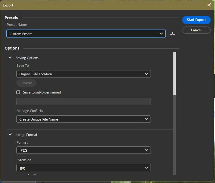 (Hint: Save your Export options as a Preset.)