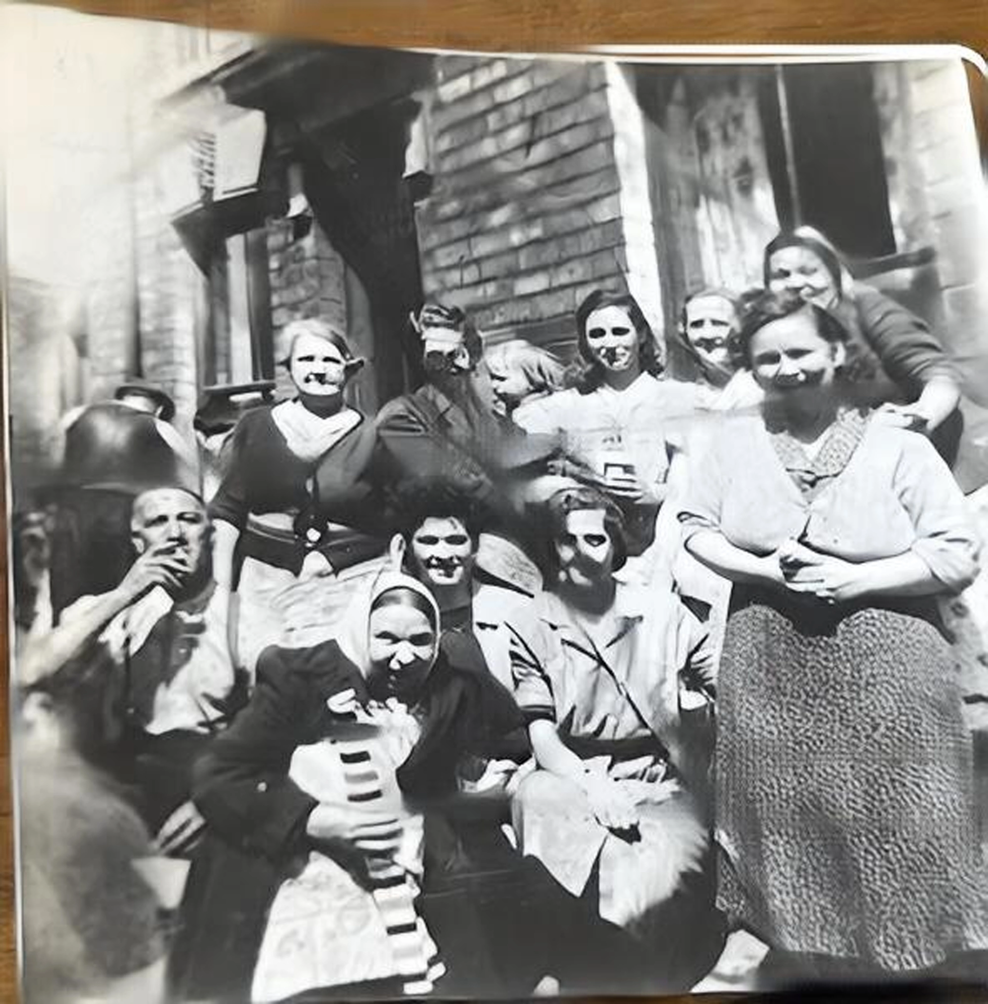 The images line up with one another in seperate layers but I want to copy/transfer/ blend parts of faces to the blurred one to enhance the quality of a final photo.