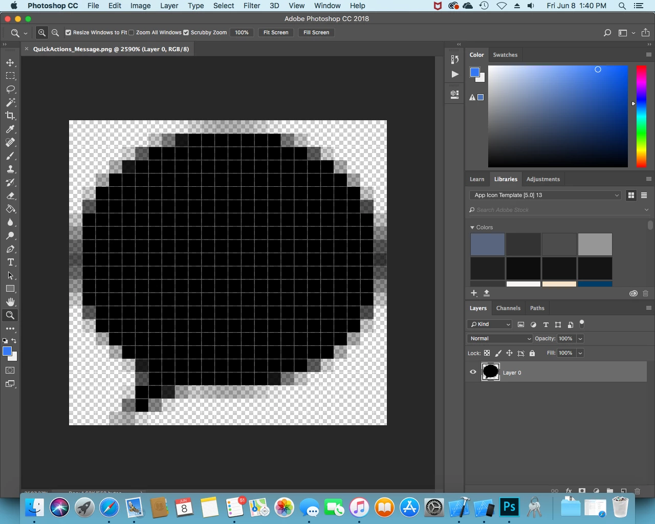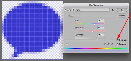 That picture of a message bubble is 24 x 23 pixels. I would like to change the color from black to the blue color selected, but I want the edges of the picture to keep the different shades of the color so that the picture shows smooth edges when it is in it's actual size.