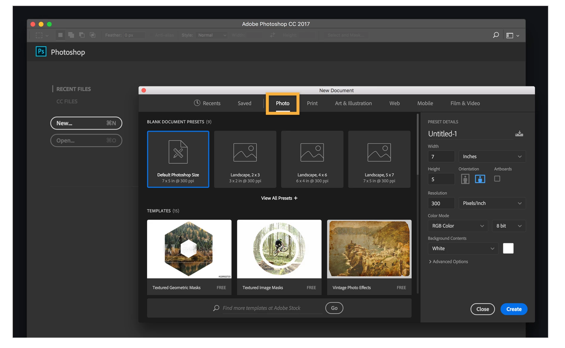 How do I change the new document window?