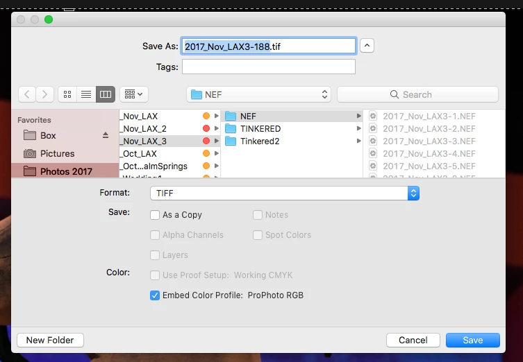 In the previous version of Photoshop, the default format for SAVE AS was PSD; perfect as I like to post produce, save as PSD then export to JPG. If I need to go back and tinker, I can do as all the detail is preserved in the PSD layers.