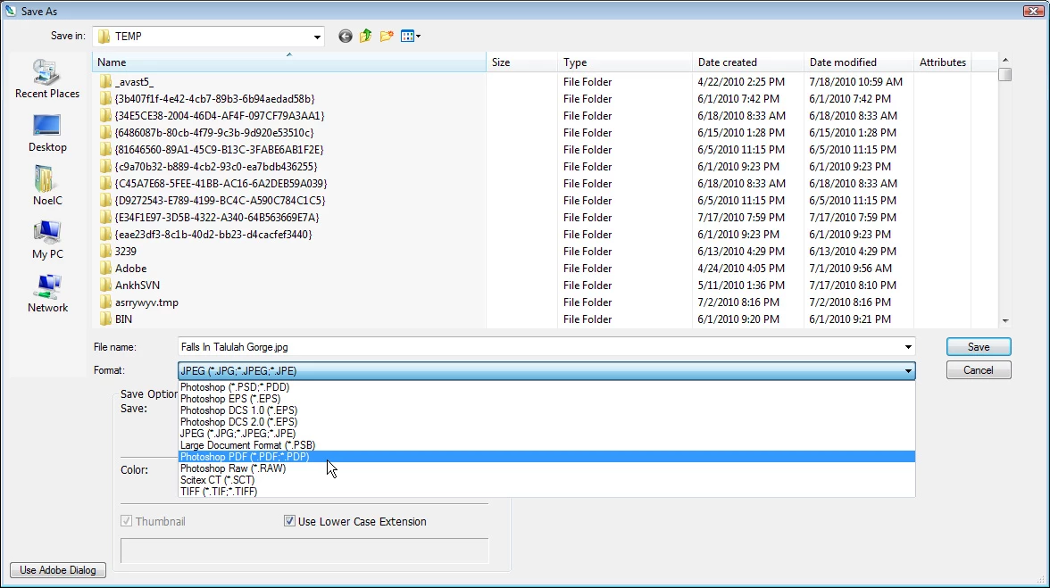 increases. By the time 32 bit is selected, the list is very limited and doesn't include PDF (Image > Mode > 32 bits/channel)