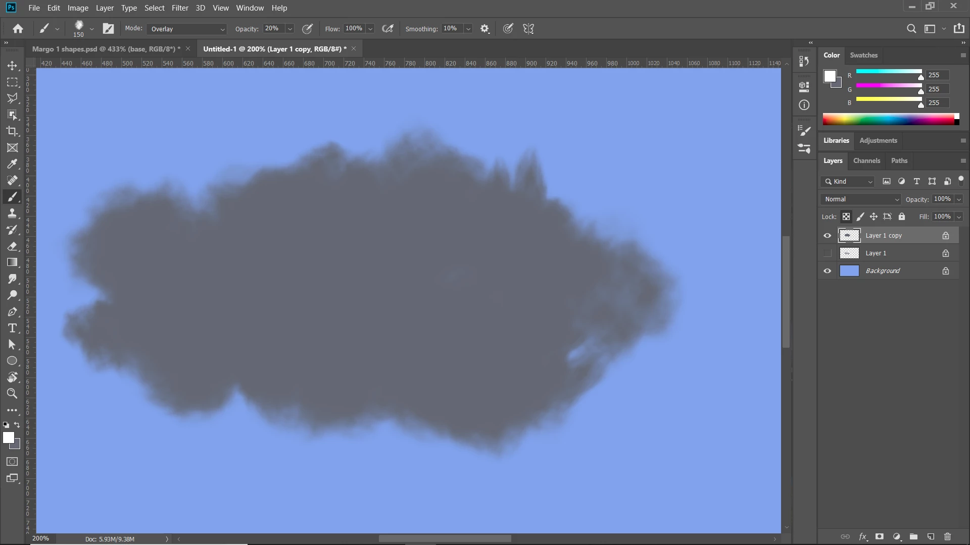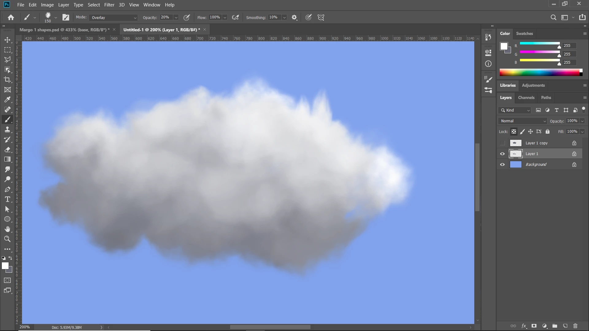 Umm, my second image didn't post. Here's what happen when you paint in the cloud with a white brush.