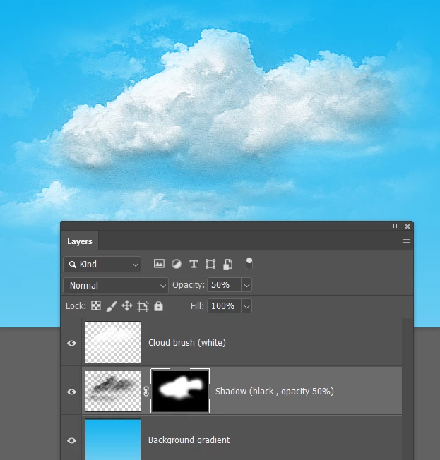 Ctrl click to load as a selection, and fill with black on a new layer below the cloud layer, and reduce opacity to 50%