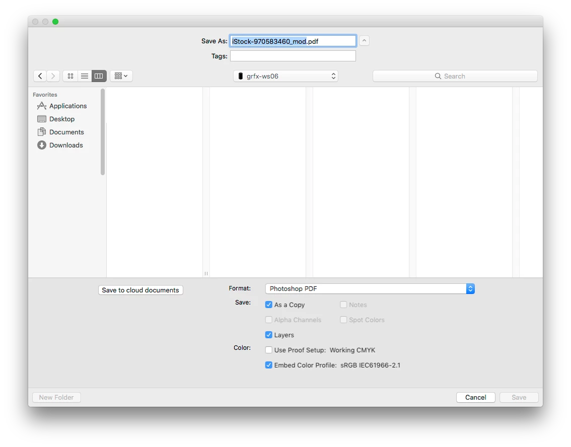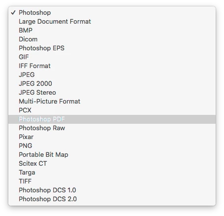 Set the Format Pop-Up Menu to Photoshop PDF.