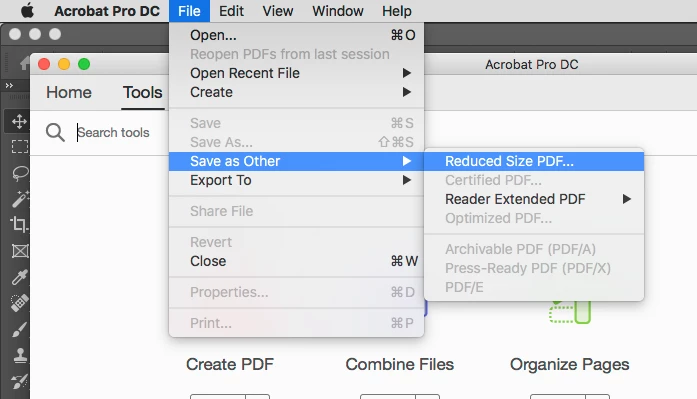 (File > Save As Other > Reduced Size PDF...).