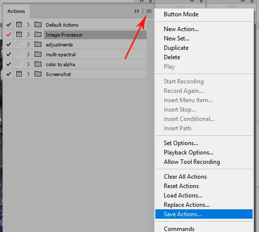 Note that actions can't be saved out individually, you can only save out sets.