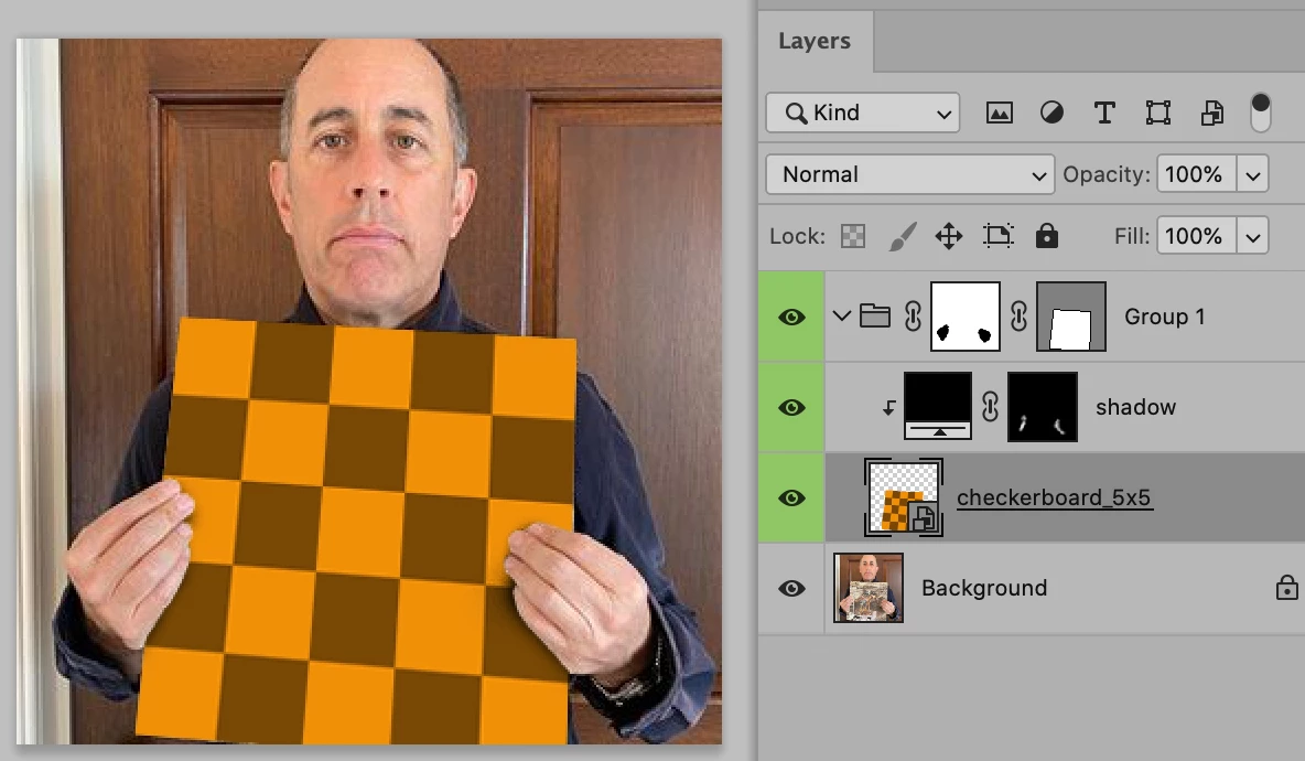 Thank you both for the detailed responses but I am still a bit confused on how to get the checkerboard pattern first before actually adding my image to it and then how to use the smart objects, if possible do either of you know a video that demonstrates how to do it.