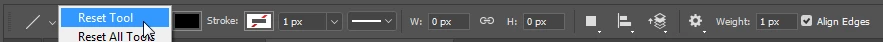 Select the Line tool. Right click on the line tool icon on the left of the Options bar and choose Reset Tool.