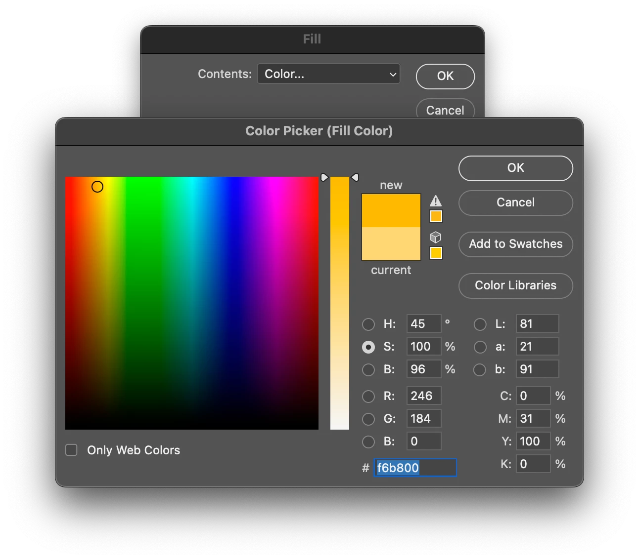 Same is true of selecting a color fill when using Shift+F5 for fill. Now I see this: