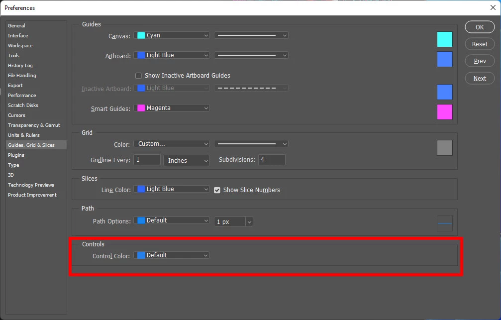 You can make that change by going to your edit menu then selecting: Preferences > Guides, Grid & Slices