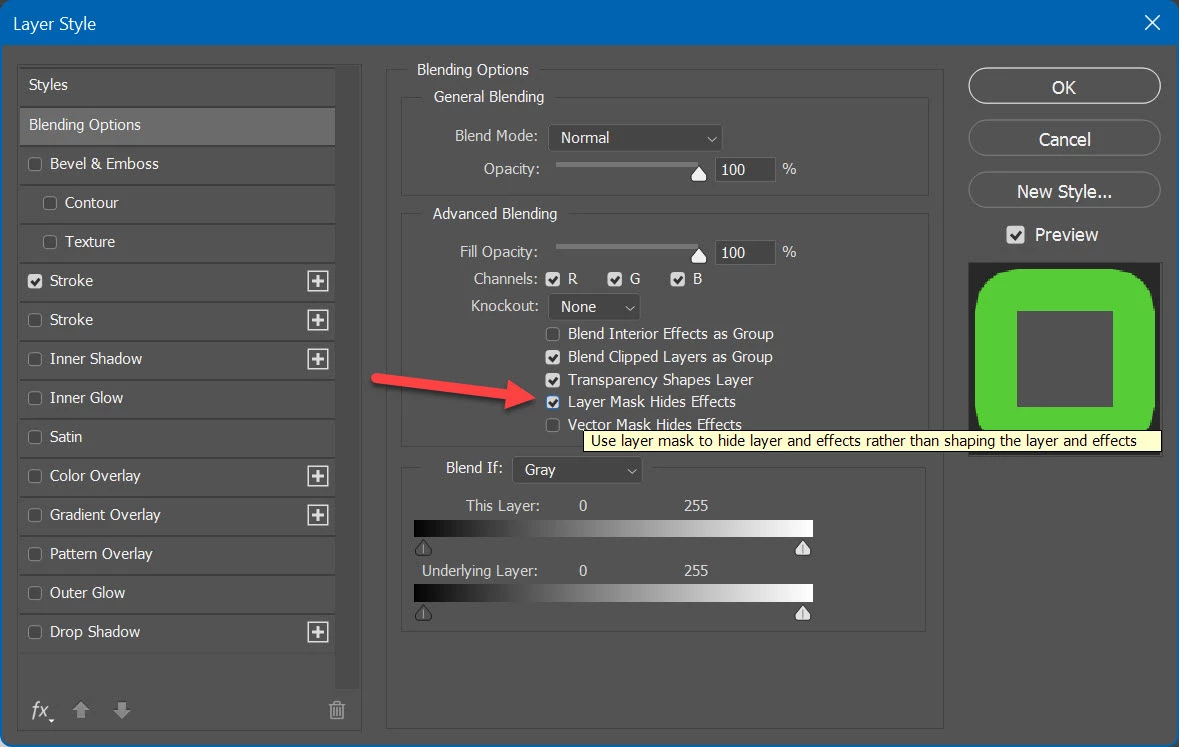 Not sure what exactly you want to achieve. Perhaps Layer Mask Hides Effects from Layer Style dialogue can solve your problem?