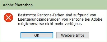 "Certain Pantone-Colors are no longer available at Adobe because of licensing changes at Pantone"
