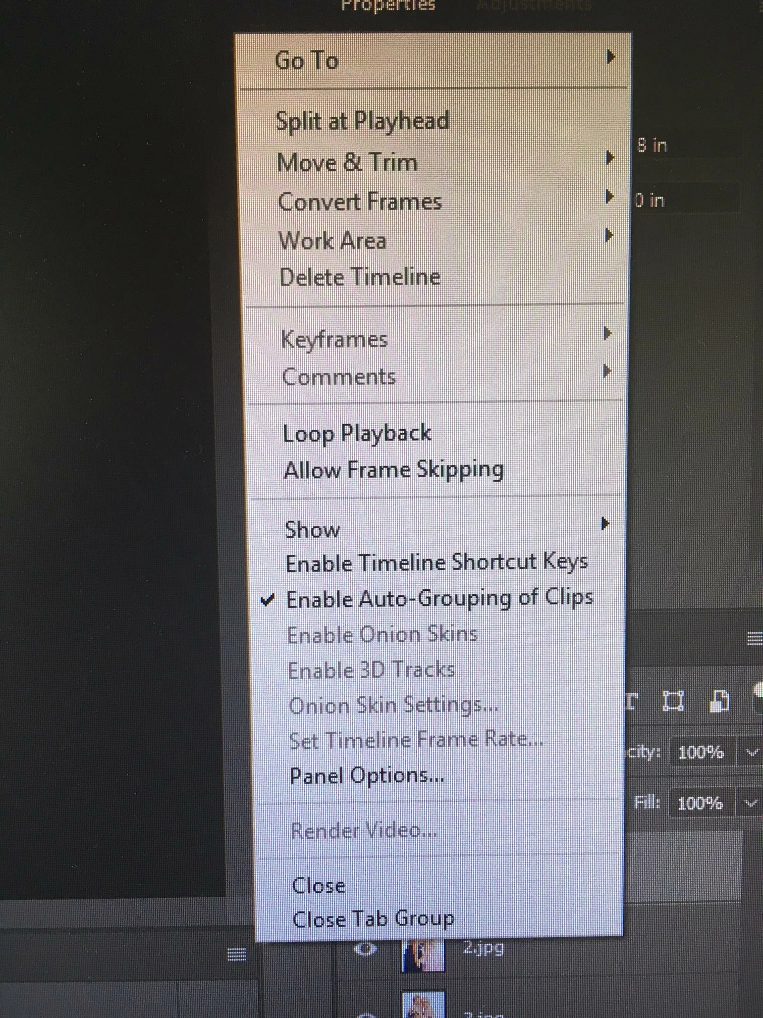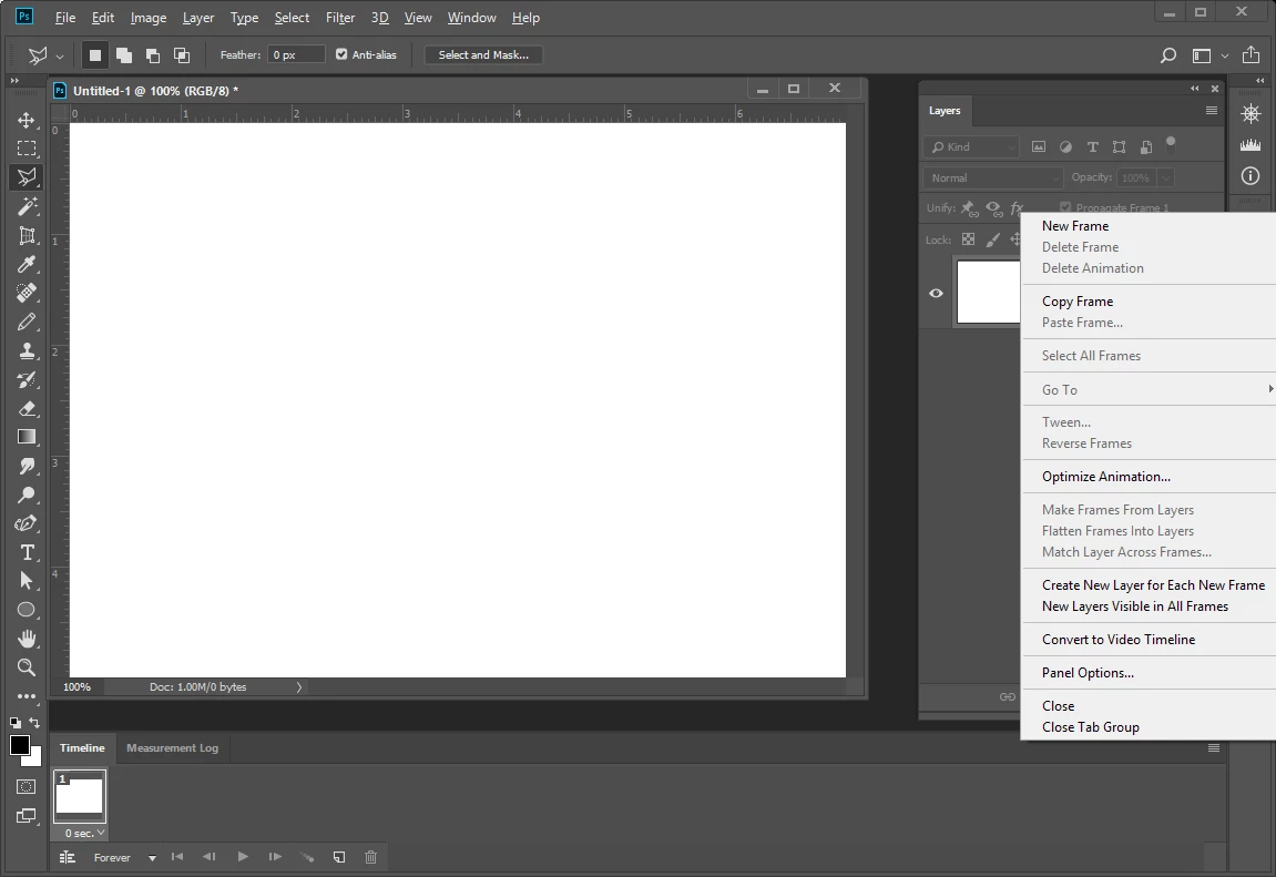 Click Menu icon in top right hand side of Timeline and the 'Make Frames From Layers' is not there, not the same options at all.