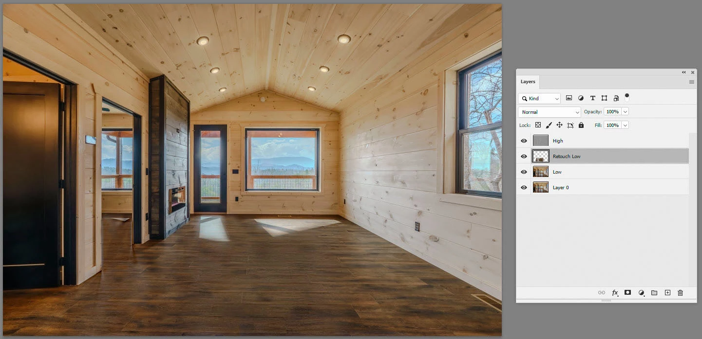 5. Now you can clone out blemishes on the high frequency layer and lighten or darken areas, such as those reflections, on the low frequency layer or a layer between the two.
