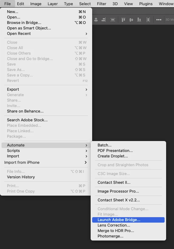 I'm doing my tutorials in the photoshop textbook (2021), in the lession it says to start photoshop, choose File>Browse in Bridge. That option doesn't appear in my File tab. Do you know how to fix this?