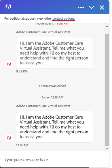 Does anybody have an actual link to a chat or an email address? The Adobe Customer Care page is useless unless you need to read so-called help tutorials. I've read everything I can find including forum entries with people having the same issue. There is no real solution in there. I need individual help!