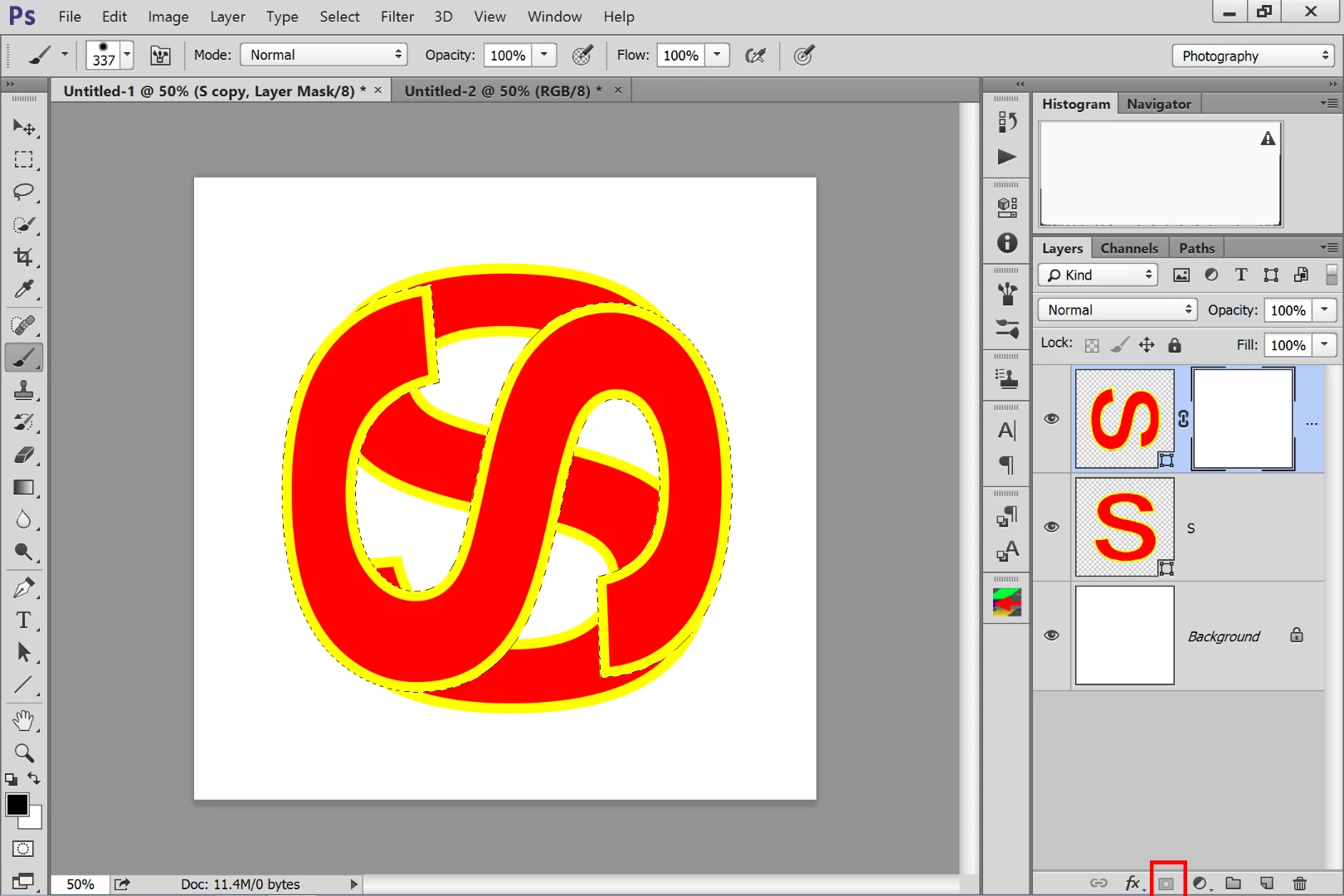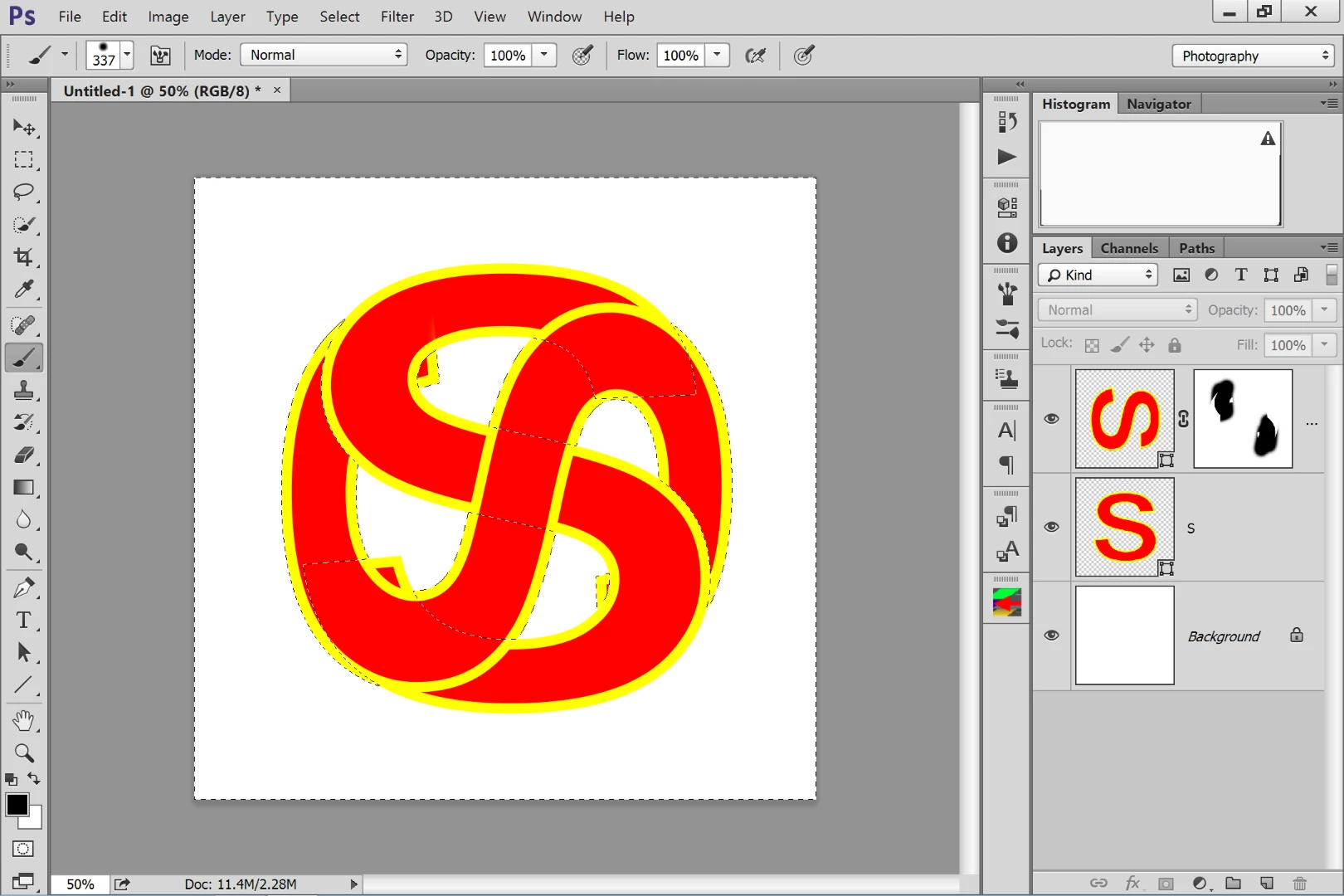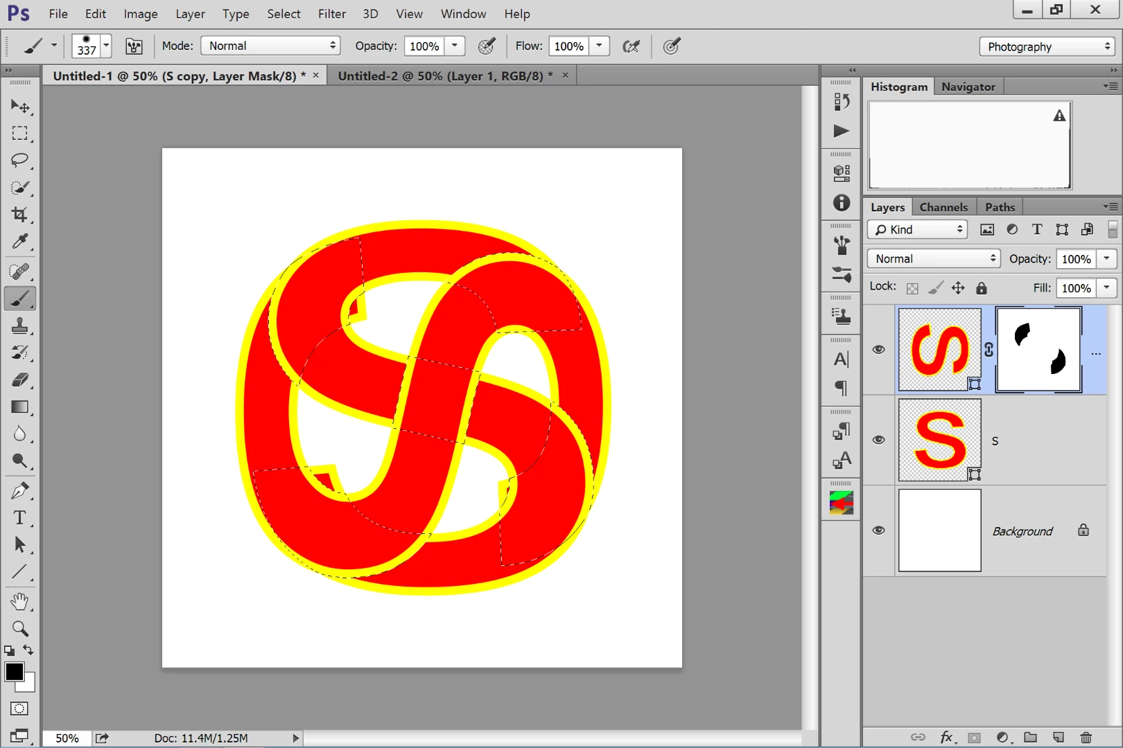 In photoshop, I am making a logo. I want the tips of each "S" in this image to go behind each other, But I don't want the entire S behind the other. How can I do this?