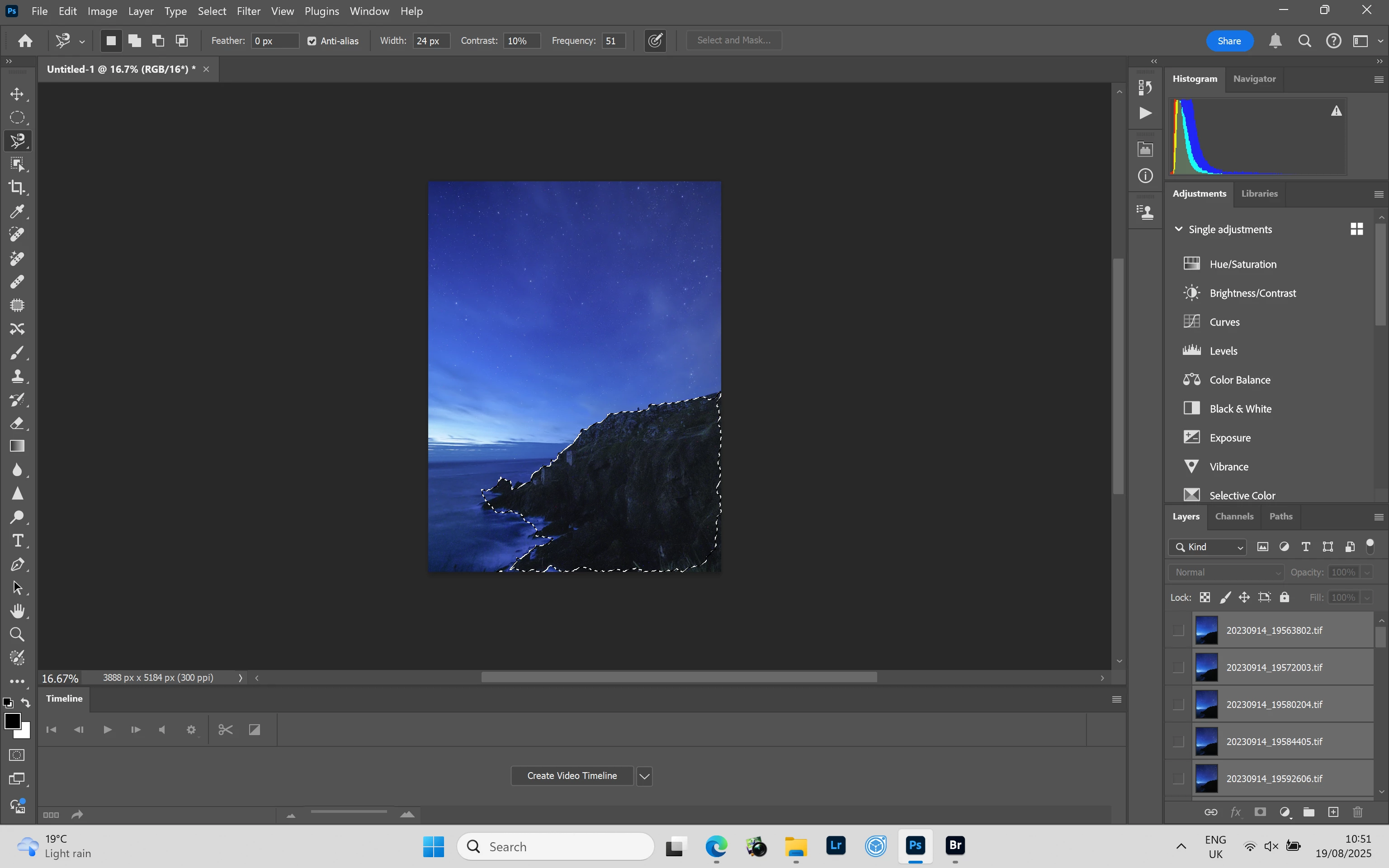 i have a headland , so surrounded by water which makes sky replacement not effective. So, I'm looking to select the headland in the initial image (first) layer then apply it to subsequent Milky Way images, from which I'll convert to jpg and make a Timelapse. I've seen many like this so know it's possible and should be easy, but as much as I've tried searching, I'm coming up with everything except what I'm trying to do.