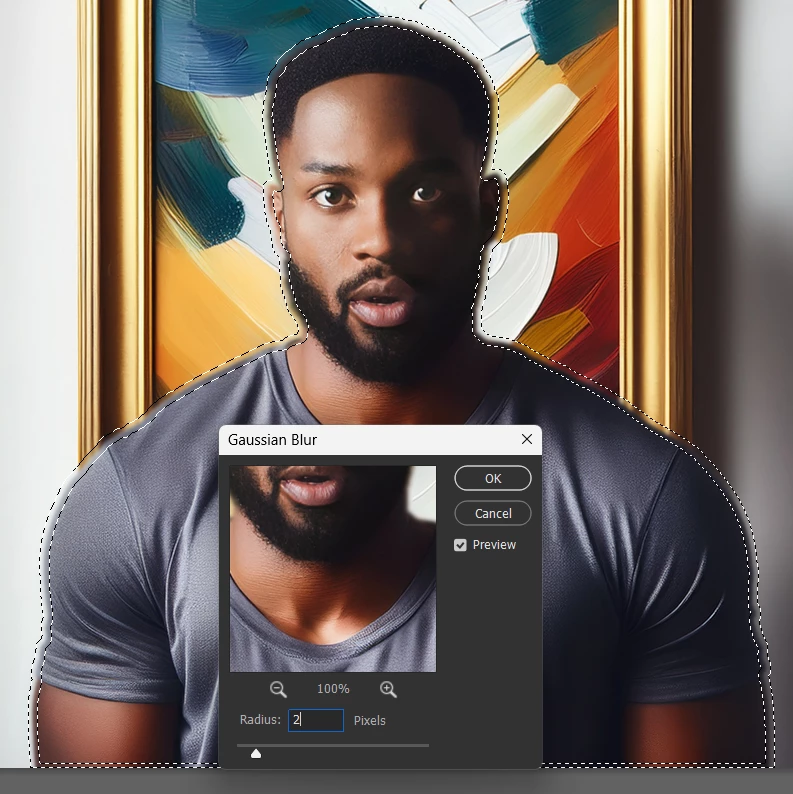 I've been trying to achieve a blurred edges effect on Photoshop. I used the Marquee selection tool and increased the feather to 100, and then added the Gaussian Blur effect, but I am still unable to achieve it.